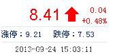 今開: 8.34 成交量: 7.94萬手 振幅: 2.03% 最高: 8.44 成交額: 6650.40萬元 換手率: 1.82% 最低: 8.27 總市值: 36.73億 市凈率: 2.61 昨收: 8.37 流通市值: ...