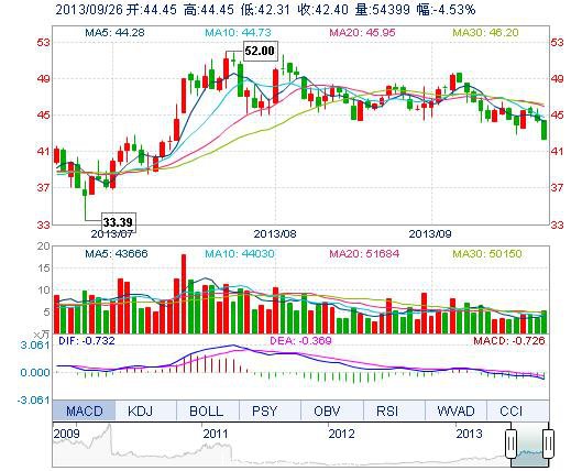 今開(kāi): 44.45 成交量: 5.44萬(wàn)手 振幅: 4.82% 最高: 44.45 成交額: 2.35億元 換手率: 1.89% 最低: 42.31 總市值: 126.21億 市凈率: 8.46 昨收: 44.41 流通市值...