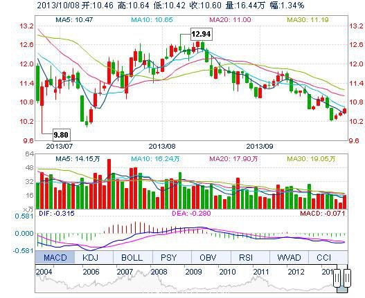 今開: 10.46 成交量: 16.44萬手 振幅: 2.10% 最高: 10.64 成交額: 1.73億元 換手率: 1.74% 最低: 10.42 總市值: 110.71億 市凈率: 3.30 昨收: 10.46 流通市值...