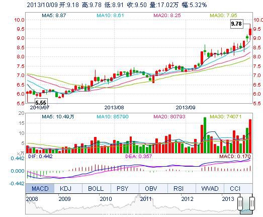 | 最 高: | 9.78 | 成交額: | 1.58億元 | 換手率: | 6.19% |