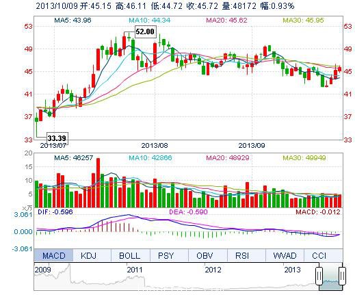 | 最 高: | 46.11 | 成交額: | 2.19億元 | 換手率: | 1.68% |