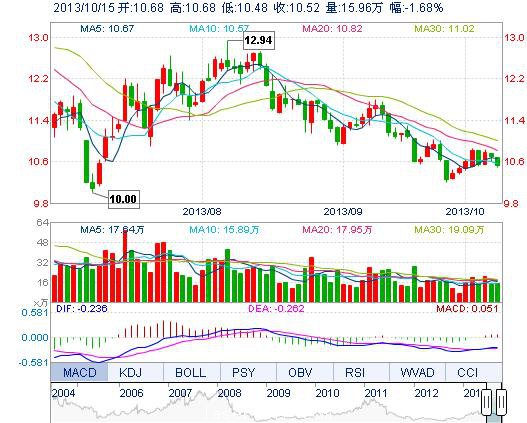 今開: 10.68 成交量: 15.96萬手 振幅: 1.87% 最高: 10.68 成交額: 1.68億元 換手率: 1.69% 最低: 10.48 總市值: 109.87億 市凈率: 3.28 昨收: 10.70 流通市值...