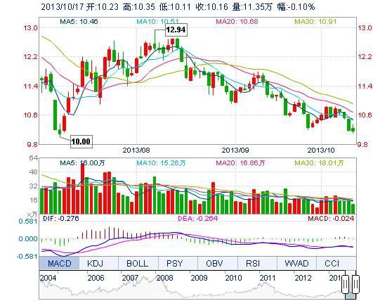 今開: 10.23 成交量: 11.35萬手 振幅: 2.36% 最高: 10.35 成交額: 1.16億元 換手率: 1.20% 最低: 10.11 總市值: 106.11億 市凈率: 3.16 昨收: 10.17 流通市值...