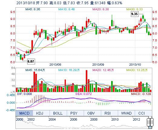 | 今 開: | 7.90 | 成交量: | 6.13萬手 | 振 幅: | 2.53% |