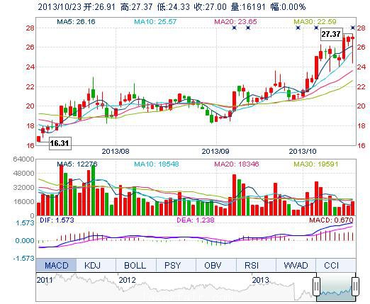 | 今 開: | 26.91 | 成交量: | 1.62萬手 | 振 幅: | 11.26% |