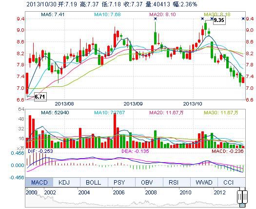 今開: 7.19 成交量: 4.04萬手 振幅: 2.64% 最高: 7.37 成交額: 2945.02萬元 換手率: 0.93% 最低: 7.18 總市值: 32.19億 市凈率: 2.36 昨收: 7.20 流通市值: ...