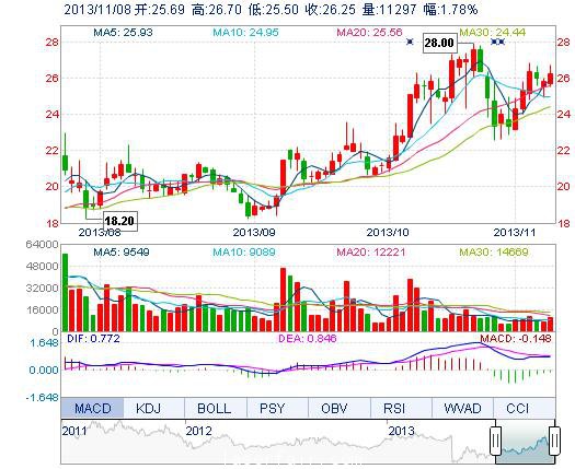 | 最 低: | 25.50 | 總市值: | 18.38億 | 市凈率: | 6.29 |