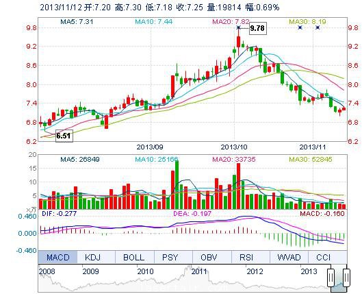 | 最 低: | 7.18 | 總市值: | 20.66億 | 市凈率: | 3.31 |
