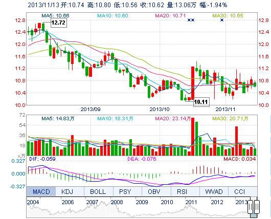 今開: 10.74 成交量: 13.06萬手 振幅: 2.22% 最高: 10.80 成交額: 1.39億元 換手率: 1.38% 最低: 10.56 總市值: 110.91億 市凈率: 3.17 昨收: 10.83 流通市值...