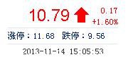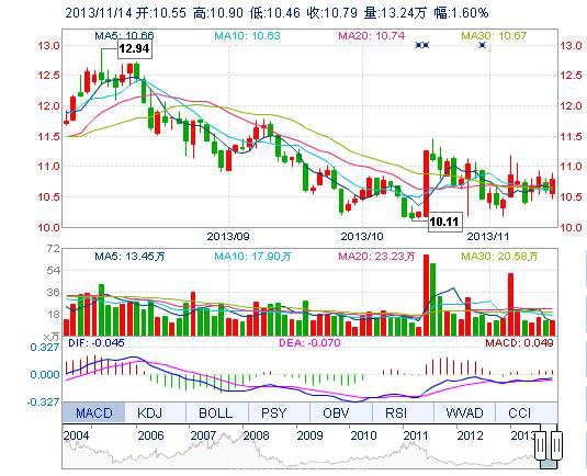 今開: 10.55 成交量: 13.24萬手 振幅: 4.14% 最高: 10.90 成交額: 1.42億元 換手率: 1.40% 最低: 10.46 總市值: 112.69億 市凈率: 3.22 昨收: 10.62 流通市值...