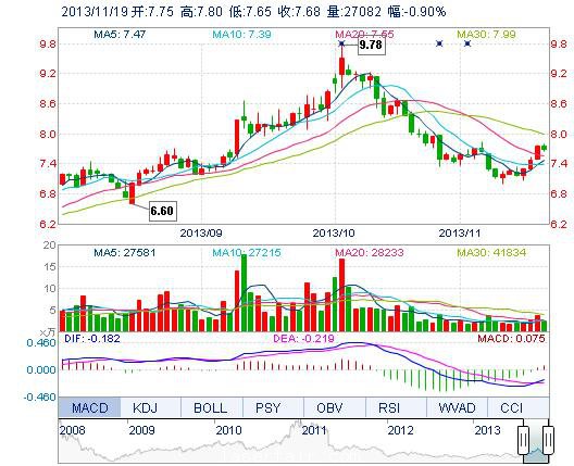 | 今 開: | 7.75 | 成交量: | 2.71萬手 | 振 幅: | 1.94% |
