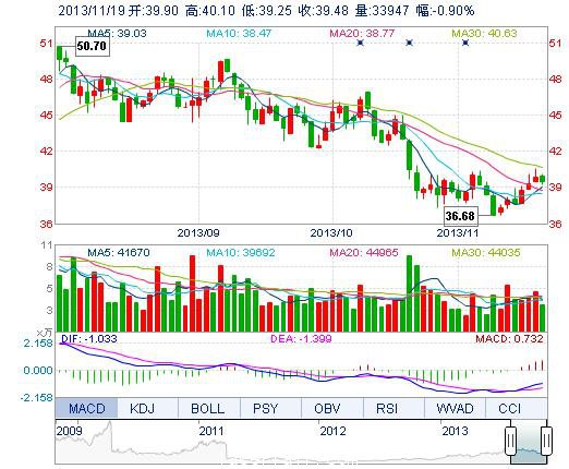 今開: 39.90 成交量: 3.39萬手 振幅: 2.13% 最高: 40.10 成交額: 1.35億元 換手率: 1.18% 最低: 39.25 總市值: 117.52億 市凈率: 7.74 昨收: 39.84 流通市值...