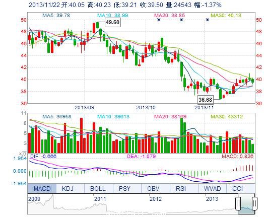今開: 40.05 成交量: 2.45萬手 振幅: 2.55% 最高: 40.23 成交額: 9720.43萬元 換手率: 0.85% 最低: 39.21 總市值: 117.58億 市凈率: 7.74 昨收: 40.05 流通市...