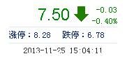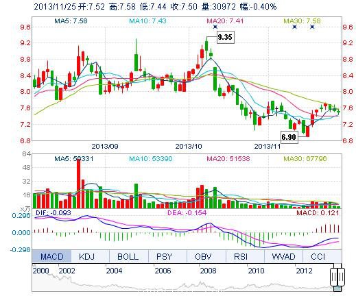 今開: 7.52 成交量: 3.10萬手 振幅: 1.86% 最高: 7.58 成交額: 2327.98萬元 換手率: 0.71% 最低: 7.44 總市值: 32.76億 市凈率: 2.40 昨收: 7.53 流通市值: ...