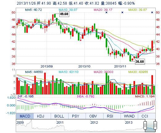 | 最 高: | 42.58 | 成交額: | 1.63億元 | 換手率: | 1.35% |
