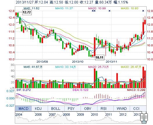 今開: 12.04 成交量: 60.34萬(wàn)手 振幅: 4.12% 最高: 12.50 成交額: 7.44億元 換手率: 6.38% 最低: 12.00 總市值: 128.15億 市凈率: 3.67 昨收: 12.13 流通市值...