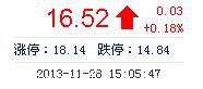 | 最 高: | 17.13 | 成交額: | 9234.03萬元 | 換手率: | 8.05% |