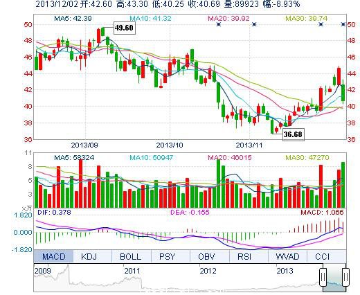 | 最 高: | 43.30 | 成交額: | 3.77億元 | 換手率: | 3.13% |