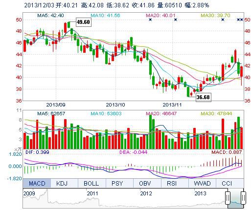 今開(kāi): 40.21 成交量: 6.05萬(wàn)手 振幅: 8.50% 最高: 42.08 成交額: 2.45億元 換手率: 2.11% 最低: 38.62 總市值: 124.60億 市凈率: 8.21 昨收: 40.69 流通市值...