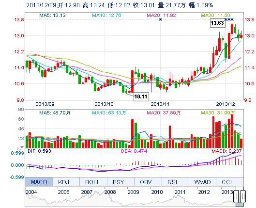 | 最 高: | 13.24 | 成交額: | 2.84億元 | 換手率: | 2.30% |