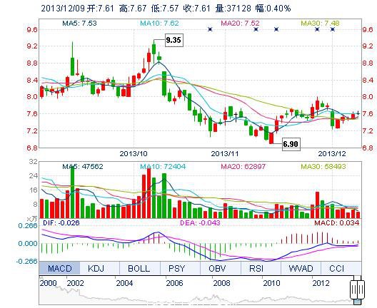 今開: 7.61 成交量: 3.71萬手 振幅: 1.32% 最高: 7.67 成交額: 2829.62萬元 換手率: 0.85% 最低: 7.57 總市值: 33.24億 市凈率: 2.43 昨收: 7.58 流通市值: ...