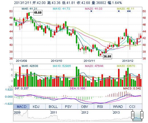 今開: 42.00 成交量: 3.68萬手 振幅: 3.69% 最高: 43.36 成交額: 1.57億元 換手率: 1.28% 最低: 41.81 總市值: 127.04億 市凈率: 8.37 昨收: 41.99 流通市值...