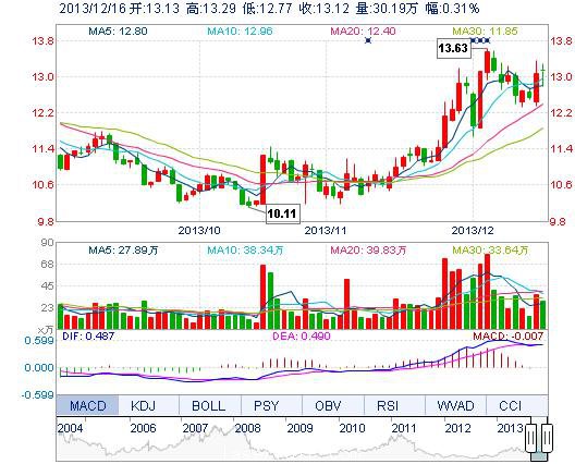 今開: 13.13 成交量: 30.19萬手 振幅: 3.98% 最高: 13.29 成交額: 3.93億元 換手率: 3.19% 最低: 12.77 總市值: 137.02億 市凈率: 3.92 昨收: 13.08 流通市值...