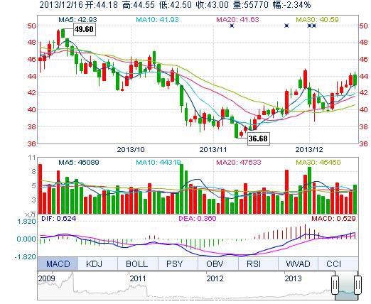 | 最 高: | 44.55 | 成交額: | 2.43億元 | 換手率: | 1.94% |
