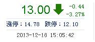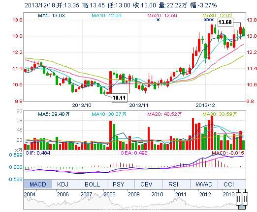 今開: 13.35 成交量: 22.22萬手 振幅: 3.35% 最高: 13.45 成交額: 2.93億元 換手率: 2.35% 最低: 13.00 總市值: 135.77億 市凈率: 3.88 昨收: 13.44 流通市值...