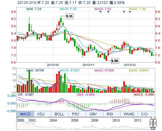 今開: 7.20 成交量: 2.21萬手 振幅: 1.12% 最高: 7.25 成交額: 1591.92萬元 換手率: 0.51% 最低: 7.17 總市值: 31.45億 市凈率: 2.30 昨收: 7.16 流通市值: ...