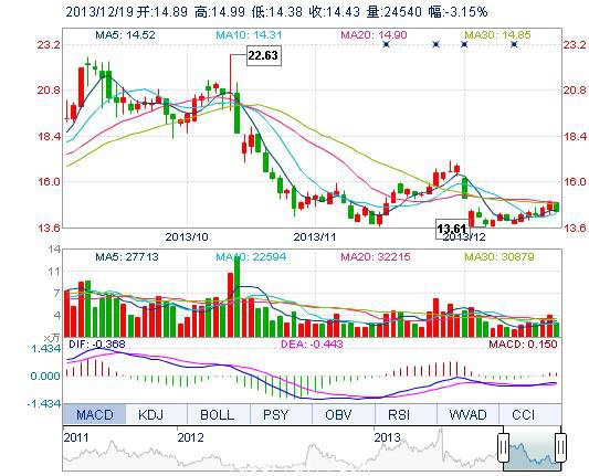 | 最 低: | 14.38 | 總市值: | 19.34億 | 市凈率: | 5.95 |