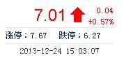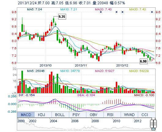 今開: 7.00 成交量: 2.09萬手 振幅: 1.29% 最高: 7.05 成交額: 1466.66萬元 換手率: 0.48% 最低: 6.96 總市值: 30.62億 市凈率: 2.24 昨收: 6.97 流通市值: ...