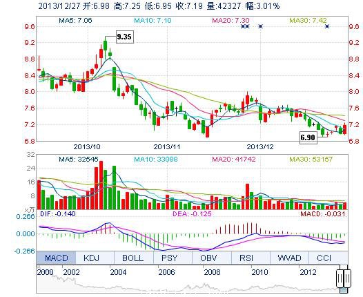 | 今 開: | 6.98 | 成交量: | 4.23萬手 | 振 幅: | 4.30% |