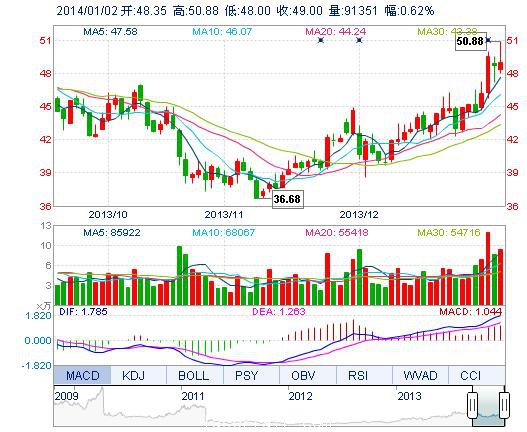 | 最 高: | 50.88 | 成交額: | 4.54億元 | 換手率: | 3.18% |