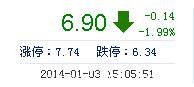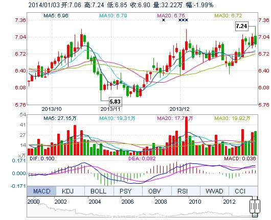 今開: 7.06 成交量: 32.22萬手 振幅: 5.54% 最高: 7.24 成交額: 2.26億元 換手率: 3.62% 最低: 6.85 總市值: 61.49億 市凈率: 2.28 昨收: 7.04 流通市值: 61...