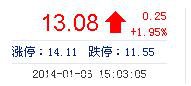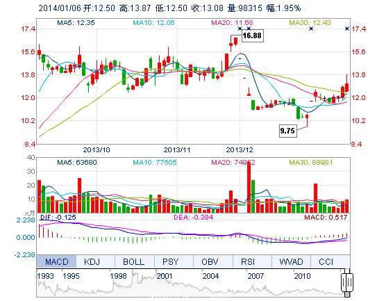 | 最 高: | 13.87 | 成交額: | 1.30億元 | 換手率: | 5.66% |
