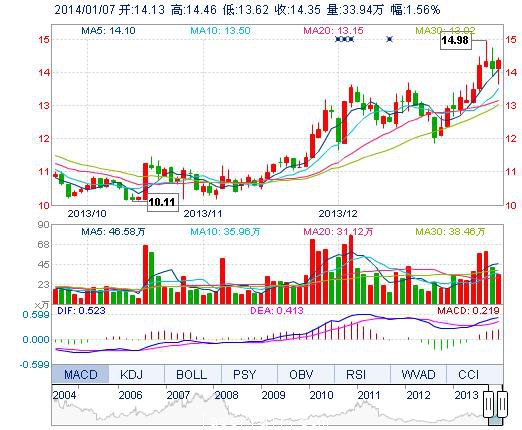 今開(kāi): 14.13 成交量: 33.94萬(wàn)手 振幅: 5.94% 最高: 14.46 成交額: 4.78億元 換手率: 3.59% 最低: 13.62 總市值: 149.87億 市凈率: 4.29 昨收: 14.13 流通市值...