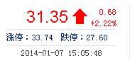 | 今 開: | 30.64 | 成交量: | 1.33萬手 | 振 幅: | 4.76% |