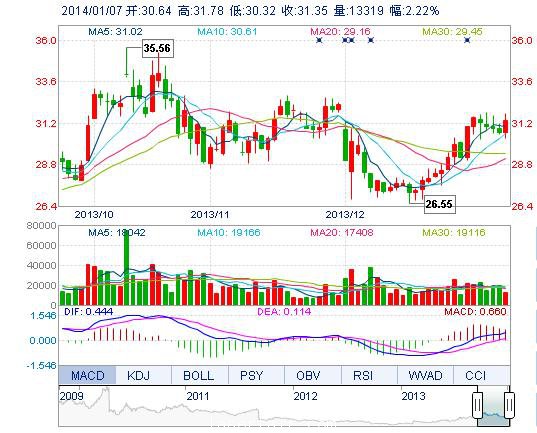 | 最 低: | 30.32 | 總市值: | 135.63億 | 市凈率: | 8.36 |