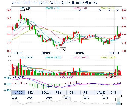 | 最 高: | 8.14 | 成交額: | 3946.87萬(wàn)元 | 換手率: | 1.78% |