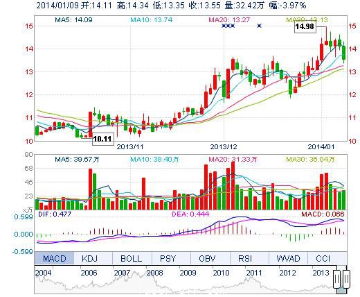 昨  收: 14.11 流通市值: 128.13億 市盈率TTM 35.31