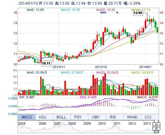 今開: 13.58 成交量: 29.71萬手 振幅: 4.72% 最高: 13.58 成交額: 3.92億元 換手率: 3.14% 最低: 12.94 總市值: 136.71億 市凈率: 3.91 昨收: 13.55 流通市值...