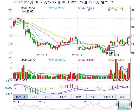最  高: 17.25 成交額: 2.53億元 換手率: 21.93%