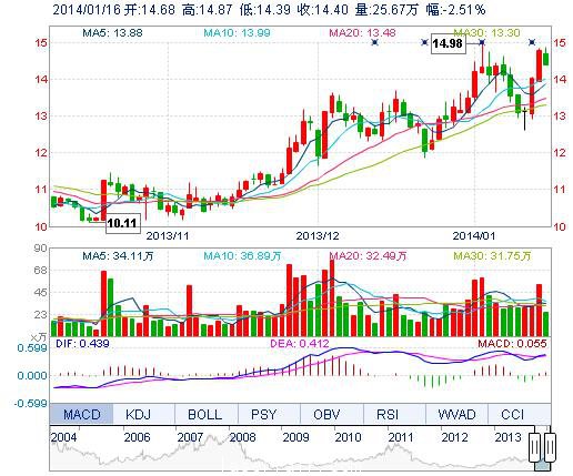 | 最 低: | 14.39 | 總市值: | 150.39億 | 市凈率: | 4.30 |