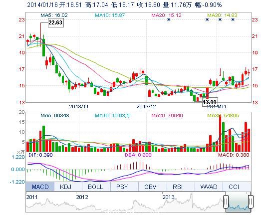 | 今 開(kāi): | 16.51 | 成交量: | 11.76萬(wàn)手 | 振 幅: | 5.19% |