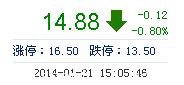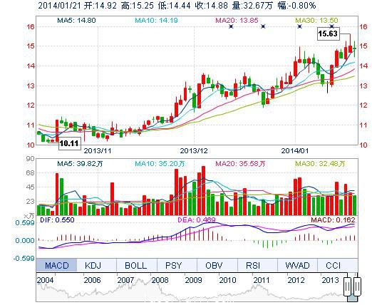 今開: 14.92 成交量: 32.67萬手 振幅: 5.40% 最高: 15.25 成交額: 4.83億元 換手率: 3.46% 最低: 14.44 總市值: 155.41億 市凈率: 4.45 昨收: 15.00 流通市值...