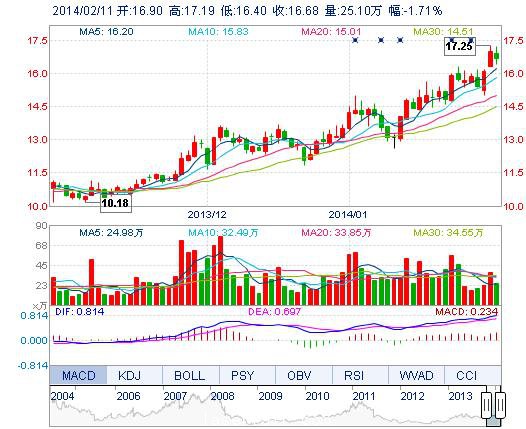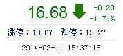 今開: 16.90 成交量: 25.10萬(wàn)手 振幅: 4.66% 最高: 17.19 成交額: 4.19億元 換手率: 2.63% 最低: 16.40 總市值: 175.52億 市凈率: 4.98 昨收: 16.97 流通市值...