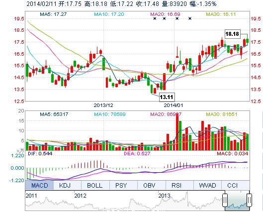 | 今 開: | 17.75 | 成交量: | 8.39萬(wàn)手 | 振 幅: | 5.42% |