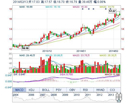 | 最 高: | 17.57 | 成交額: | 6.81億元 | 換手率: | 4.14% |