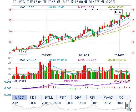今開(kāi): 17.04 成交量: 20.48萬(wàn)手 振幅: 3.40% 最高: 17.45 成交額: 3.51億元 換手率: 2.15% 最低: 16.87 總市值: 178.88億 市凈率: 5.08 昨收: 17.04 流通市值...